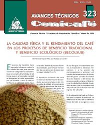 La calidad física y el rendimiento del café en los procesos de beneficio tradicional y beneficio ecológico (Becolsub). La investigación evaluó el efecto del beneficio tradicional y ecológico en la calidad física del café hasta obtener almendra. Los resultados muestran que el beneficio ecológico mejora la calidad, reduce impurezas, pasillas y defectos, y aumenta el rendimiento. Esta información es clave para mejorar ingresos del caficultor y tomar decisiones sobre el proceso de beneficio.