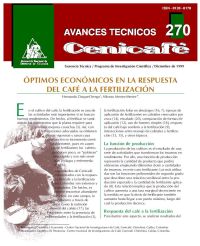 Óptimos económicos en la respuesta del café a la fertilización. El proyecto C-6 de Cenicafé evaluó la respuesta del café a fertilización con N, P y K en 11 localidades. Los resultados mostraron respuestas económicas significativas al N y al K, con coincidencia entre óptimos biológicos y económicos. Se concluye que fertilizar según recomendaciones y análisis de suelos maximiza la productividad y rentabilidad del caficultor.