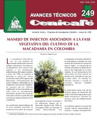 Manejo de insectos asociados a la fase vegetativa del cultivo de la macadamia en Colombia. La macadamia /Macadamia/ sp. es una especie de reciente introducción a la zona cafetera colombiana. En este Avance Técnico se hace una descripción de los insectos recolectados en cultivos establecidos en los departamentos de Caldas, QuindÃo y Risaralda, asociados con el tallo y las hojas de las plantas, asà como su manejo una vez identificados en el cultivo.