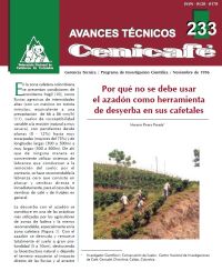 Por qué no se debe usar el azadón como herramienta de desyerba en sus cafetales. La desyerba con azadón es común en laderas cafeteras pero causa degradación del suelo, erosión y pérdida de materia orgánica. Cenicafé propone el manejo integrado de arvenses, combinando control manual, mecánico y químico. Este sistema permite establecer coberturas nobles, reducir costos, evitar toxicidad y contaminación, y mantener pérdidas de suelo por erosión en niveles tolerables para sistemas cafeteros sostenibles actuales.