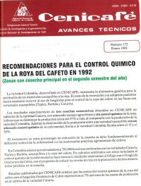 Recomendaciones para el control quÃmico de la roya del cafeto en 1992. (Zonas con cosecha principal en el segundo semestre del año)