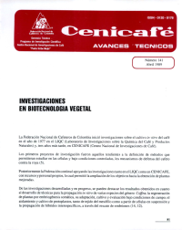 Investigaciones en biotecnologÃa vegetal. Este avance técnico recopila información histórica sobre la biotecnologÃa vegetal en cenicafé y el LIQC, instituciones de la Federación Nacional de Cafeteros de Colombia. Se destacan resultados obtenidos en técnicas de propagación "in vitro". Se describe el estado actual de la investigación en micropropagación por esquejes, meristemas, embriones, embriogénesis somática, cultivo de anteras. Se concluye con la información sobre el cultivo de células.