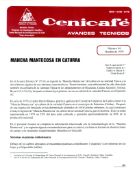Mancha mantecosa en caturra. Se amplía la descripción de la mancha mantecosa del cafeto, detallando síntomas en plántulas, hojas, ramas y frutos, asociados a menor producción y caída de frutos. La enfermedad es causada por colletotrichum y podría tener base genética. El control recomendado incluye zoqueo de árboles enfermos y eliminación de frutos, plántulas y almácigos afectados.