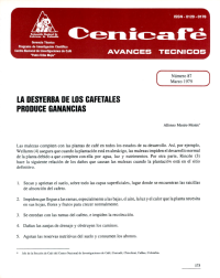 La desyerba de los cafetales produce ganancias. El estudio en naranjal y la trinidad evaluó el efecto del número de desyerbas en café caturra. La producción aumentó con más desyerbas, pero económicamente no fue rentable pasar de 16 a 24. La mayor ventaja se logró con 16 desyerbas en tres años, influenciada por el tipo de maleza presente.