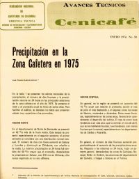 Precipitación en la zona cafetera en 1975. Se presentan los valores mensuales de la precipitación, el número de días lluviosos y la precipitación máxima en 24 horas en las principales estaciones de la zona cafetera en el año de 1975.